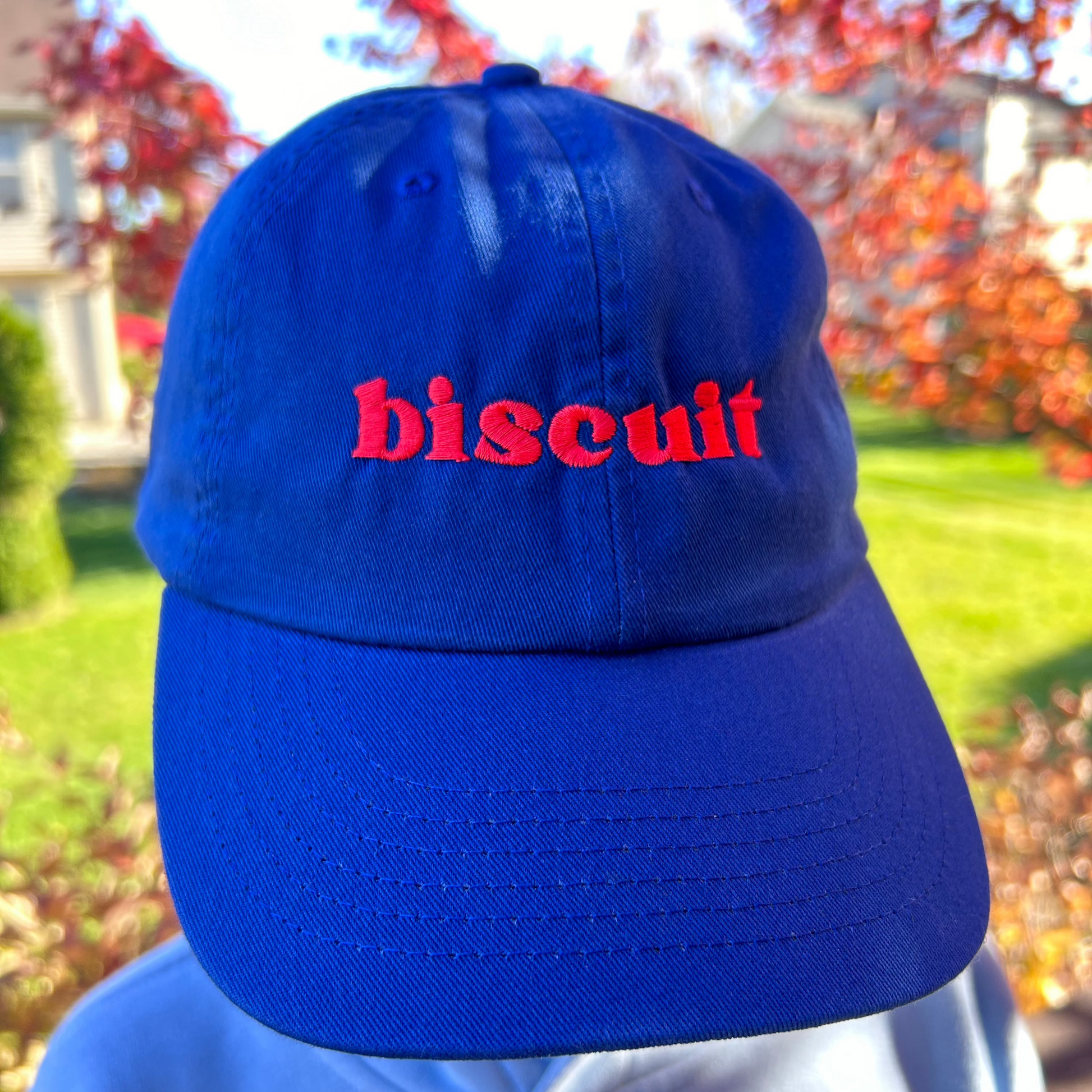 Our biscuit hat redone for members of the Bills Mafia. Done in collaboration with Ann Arbor's best wing spot, Side Biscuit, this hat is a classic "dad" style fit with an adjustable buckle at the back. Bills royal blue with red embroidery.